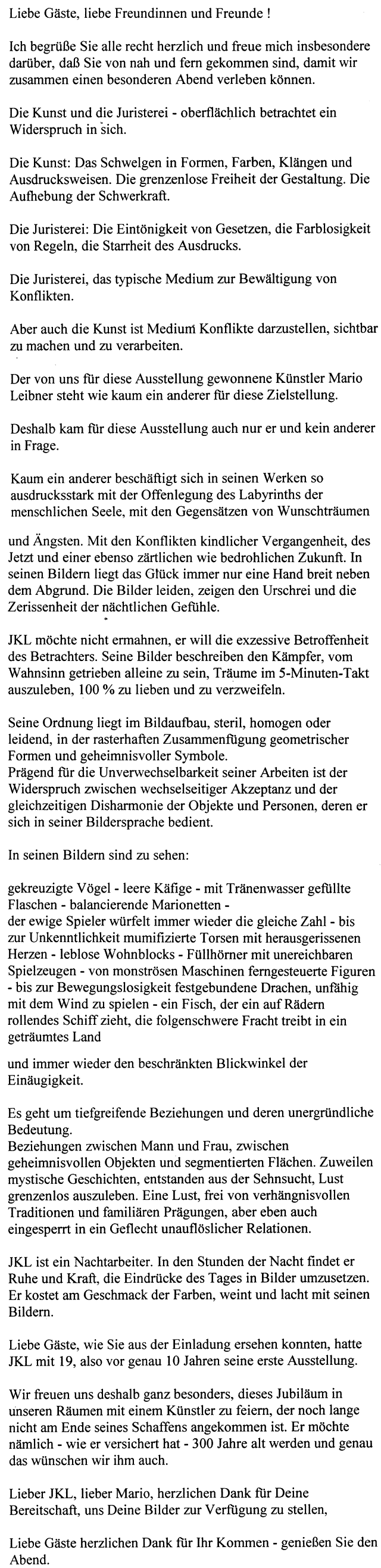 Laudatio von Peter Wickler, 1997